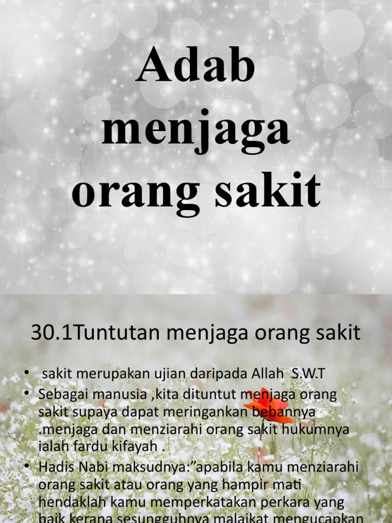 Adab Menziarahi Orang Sakit from imgv2-2-f.scribdassets.com Kena ingat, pesakit nak rehat, bukan nak melayan kita berborak. Melawatlah orang yang sakit dengan niat yang baik seperti kerana kasih sayang, persaudaraan dan tanggungjawab kita sebagai orang islam. Situasi ini lebih kurang sama macam adab nak pergi rumah orang. Ingat, janganlah kita menziarahi mereka dengan niat lain seperti ingin mendapatkan kemewahan, pujian dan seumpamanya. Daripada ummu salamah r.a, nabi s.a.w. Nazar kulim, kedah cara seorang muslim melawat saudaranya yang sakit berbeza dengan cara yang dilakukan oleh bukan islam kerana disertakan dengan jampi dan doa. Nak melawat saudara sakit kanser, ada adabnya. Nak tahu apa yang patut anda betulkan dari sudut melawat orang sakit, baca nota ini….